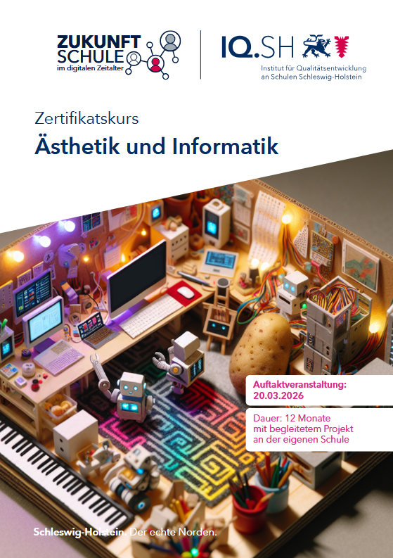 Zur Deckung des Lehrkräftebedarfs bietet das IQSH für das Fach Informatik Weiterbildungsmaßnahmen an. Im Februar 2026 startet ein Kurs. Er führt in 1,5 Jahren zu einer Unterrichtsgenehmigung für die Sek. I. Die Anmeldefrist endet am 22.12.2025.