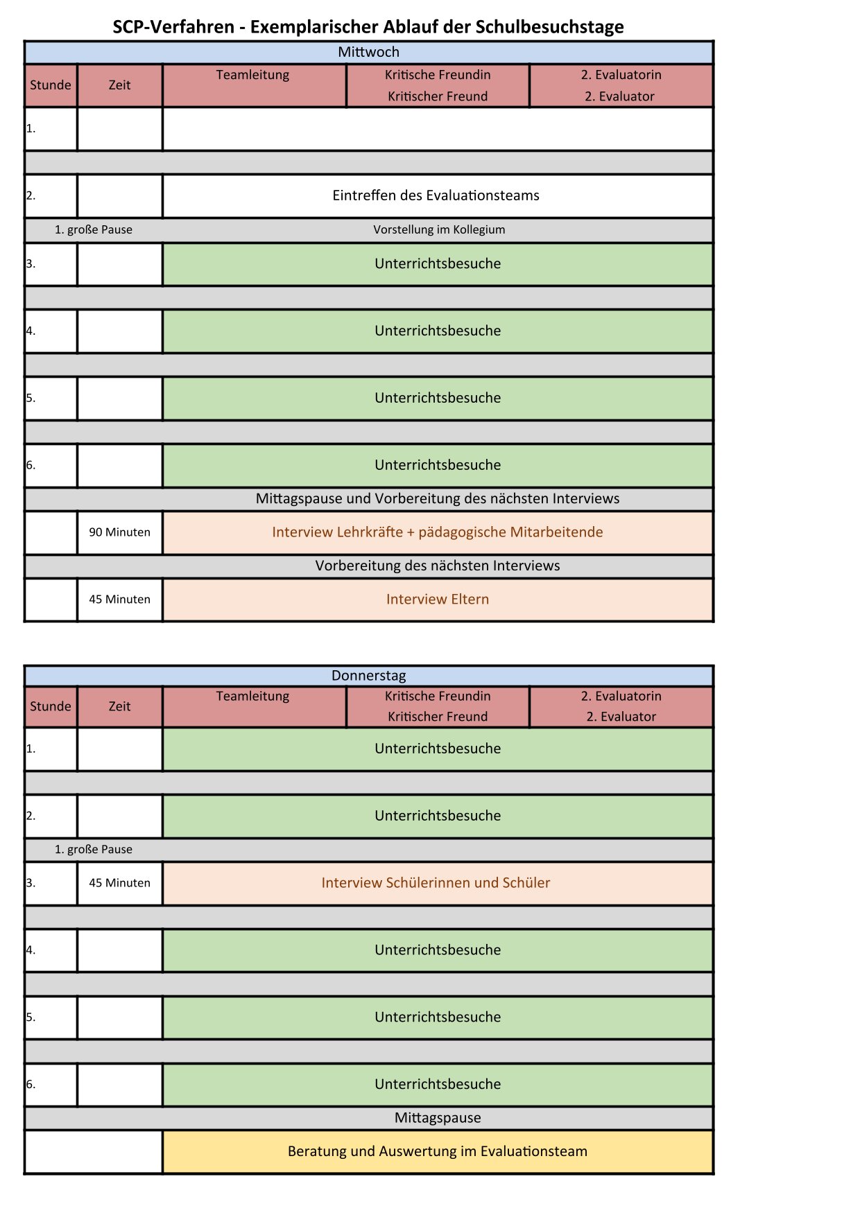 Nachfolgend ist ein exemplarischer Ablauf der Schulbesuchstage zu sehen: